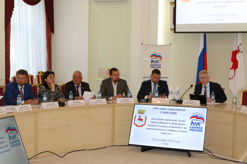 22 сентября 2025 года член президиума Регионального политического совета Нижегородского регионального отделения (НРО) партии «Единая Россия», президент Нижегородского фонда поддержки регионального сотрудничества и развития Евгений Костин на основании решения президиума от 18 сентября 2025 года провел организационное собрание депутатов городской Думы Нижнего Новгорода I-го созыва, посвященное созданию депутатского объединения партии в Думе. Повестка мероприятия включала 9 вопросов.