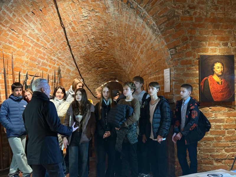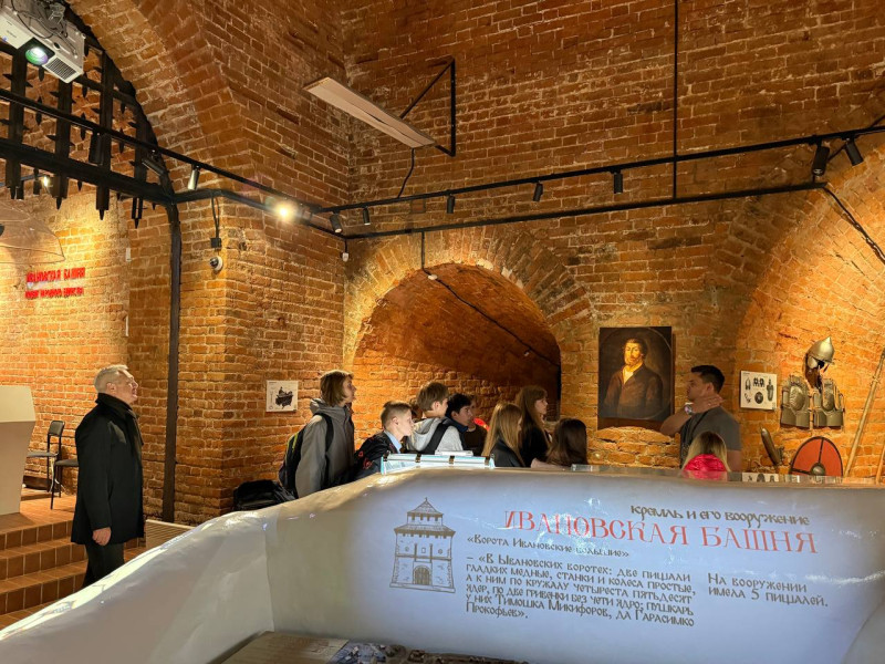 Вместе с ребятами Михаил Рыхтик подвел итоги экскурсии, расспросил школьников о впечатлениях, а также рассказал об оборонительном значении Нижегородского Кремля в годы Великой Отечественной войны.