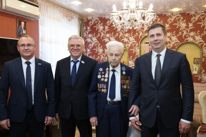 27 октября ветерану Великой Отечественной войны жителю Нижнего Новгорода Евгению Ивановичу Макарову исполнилось 100 лет. В день рождения его приехали лично поздравить заместитель губернатора Нижегородской области Андрей Гнеушев, председатель Законодательного собрания региона Евгений Люлин и председатель городской Думы Нижнего Новгорода Евгений Чинцов. Они обсудили с юбиляром последние новости и события, происходящие в стране и мире. Ветеран поделился воспоминаниями о войне, рассказал о своих планах.