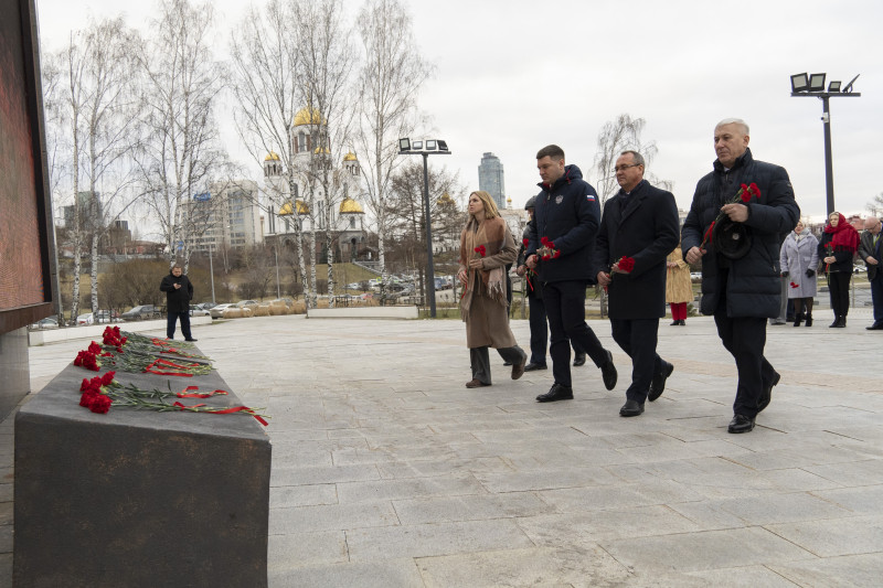 По прибытии в столицу Урала спикер Думы вместе с председателем Екатеринбургской городской Думы Анной Гурарий и коллегами из других муниципалитетов принял участие в церемонии возложения цветов к стеле «Город трудовой доблести».