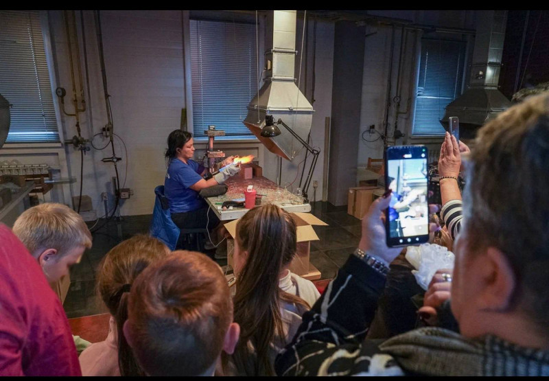 Во время экскурсии семьи защитников Родины познакомились с коллекцией игрушек, узнали об истории и традициях предприятия, а также какие украшения будут пользоваться популярностью в этом сезоне. Особенно интересной оказалась демонстрация технологии изготовления стеклянных шаров, которая сохранилась с 19 века. Гости увидели работу стеклодувного цеха, как мастера вручную расписывают каждую игрушку.