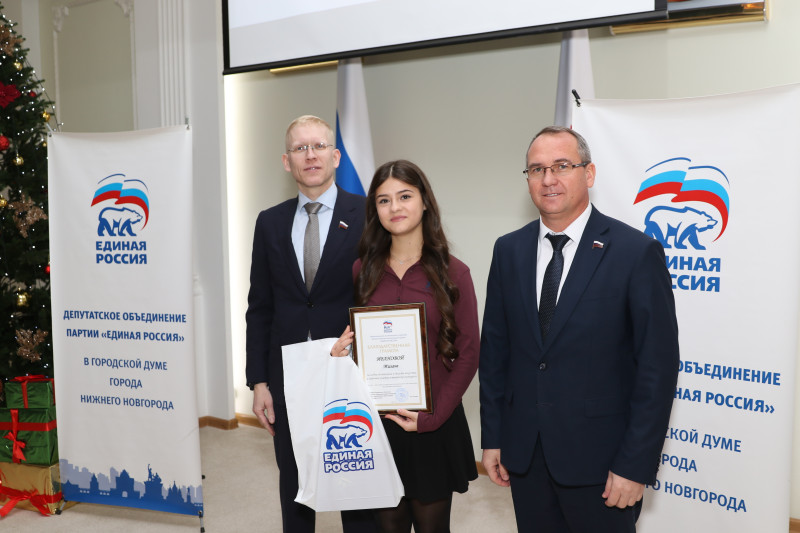Перед началом заседания по традиции 10 юных нижегородцев были отмечены благодарственными грамотами за высокие достижения в области спорта и искусства, вклад в развитие национальных ценностей, активное участие в научно-исследовательской, общественной, волонтерской деятельности и творческих конкурсах. В награждении участвовали Евгений Чинцов, Евгений Костин, Светлана Досаева, Руслан Станчев и Ольга Балакина.