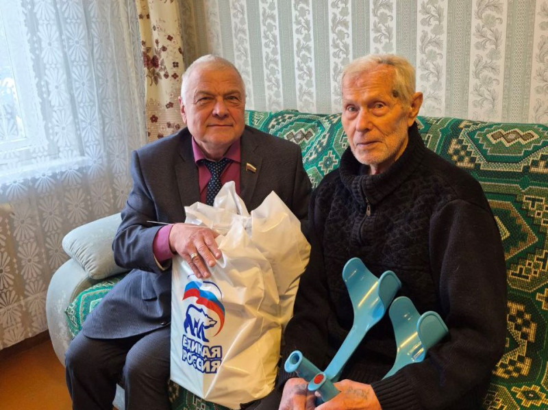 Депутат городской Думы Владимир Тарасов в рамках всероссийской акции «С Новым годом, ветеран!» поздравил с праздником Николая Иванович Емельянова.