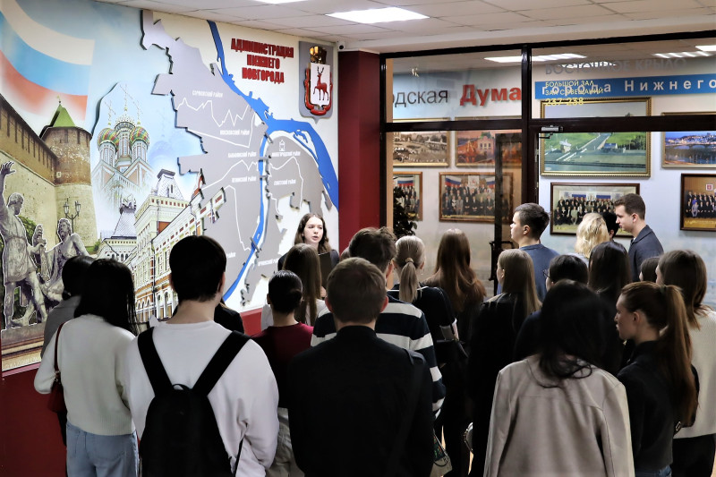 6 февраля 2026 года в городскую Думу города Нижнего Новгорода в рамках профориентационной работы и в целях знакомства молодежи с деятельностью органов власти и местного самоуправления пришли студенты второго курса отделения среднего профессионального образования Института экономики ННГУ им. Н.И. Лобачевского.
