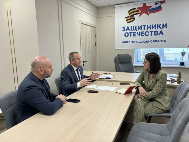 Председатель городской Думы Евгений Чинцов и председатель постоянной комиссии городской Думы по патриотическому воспитанию, молодежной политике, физической культуре и спорту Владимир Поддымников-Гордеев провели рабочую встречу с руководителем Нижегородского отделения Фонда «Защитники Отечества» Екатериной Генераловой.