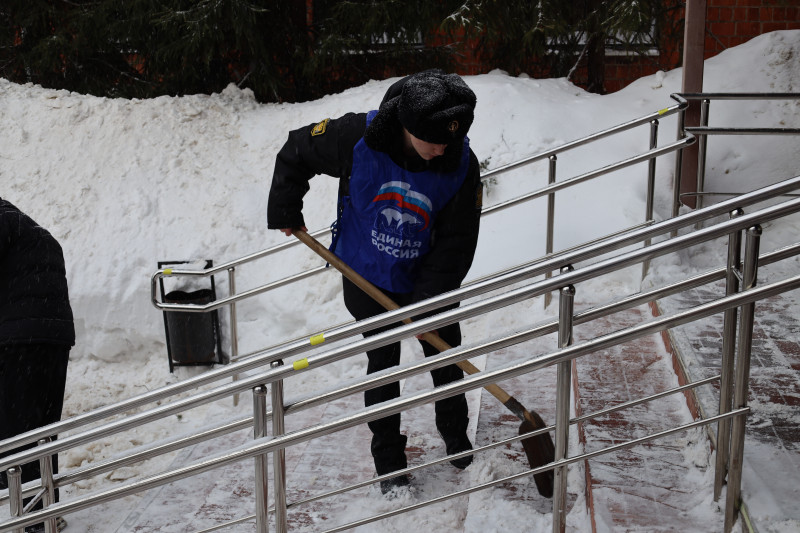 В условиях аномально снежной зимы активисты партии «Единая Россия» и «Молодой Гвардии» продолжают помогать социальным учреждениям и жителям Нижнего Новгорода в уборке снега. «Снежный десант» активно работает во всех районах города. 25 февраля группа добровольцев под руководством депутата городской Думы Нижнего Новгорода Светланы Досаевой очистила от снега подходы к поликлинике № 21 на улице Нестерова, 34А.