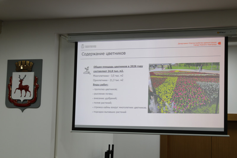 Также Елена Пегова проинформировала депутатов о системе комплексного подхода к содержанию объектов озеленения и совершенствования цветочного оформления города. Общая площадь объектов озеленения Нижнего Новгорода составляет 24,1 млн кв.м. (1890 ед.). Площадь цветников в 2026 году приблизится к 25 тыс. кв.м.
