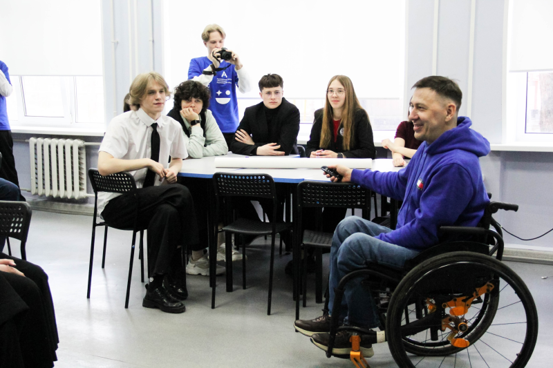 В рамках работы площадки прошла важная встреча старшеклассников с депутатом городской Думы, руководителем проектного отдела «Доступная среда» АНО «Проектный офис Стратегии развития Нижегородской области» Романом Пономаренко.