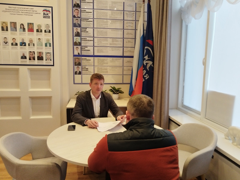 Депутат городской Думы Нижнего Новгорода Александр Петров провел очередной прием граждан в общественной приемной партии «Единая Россия» Автозаводского района.