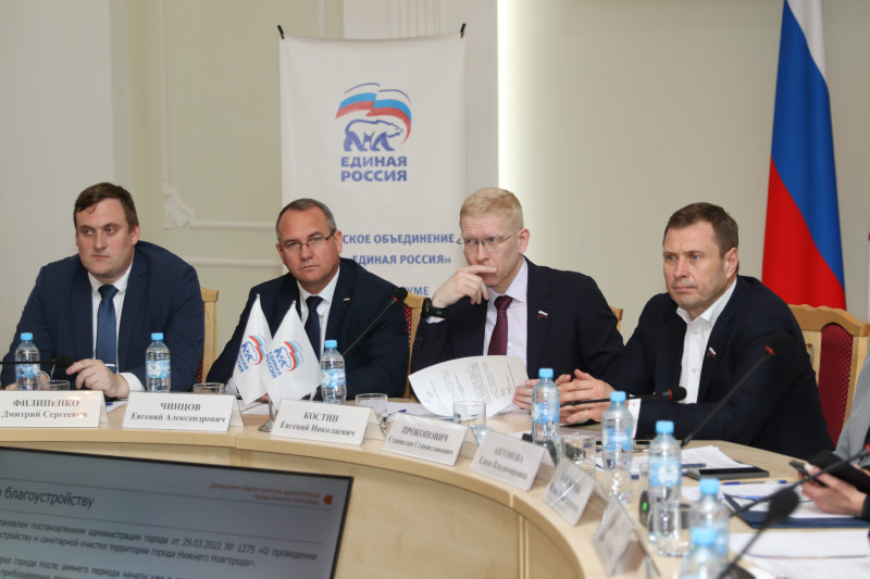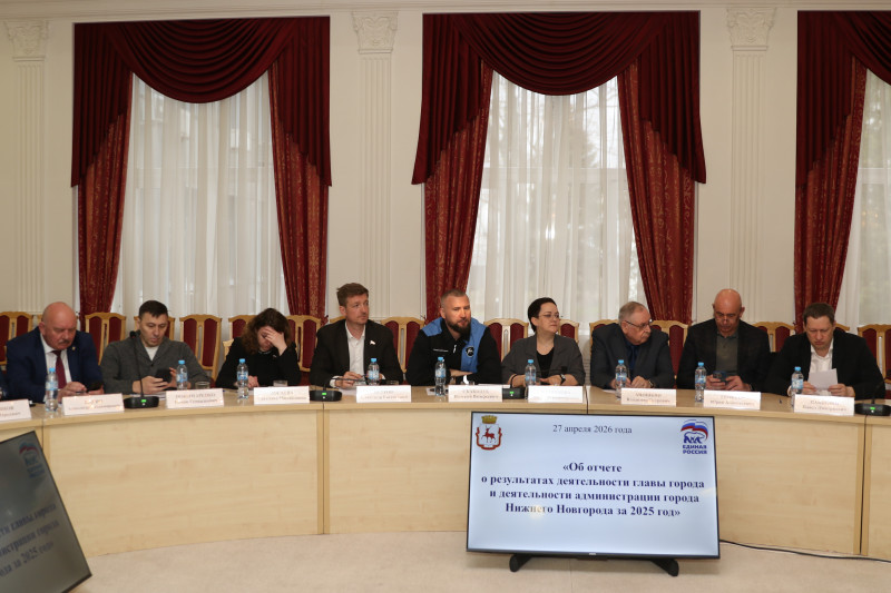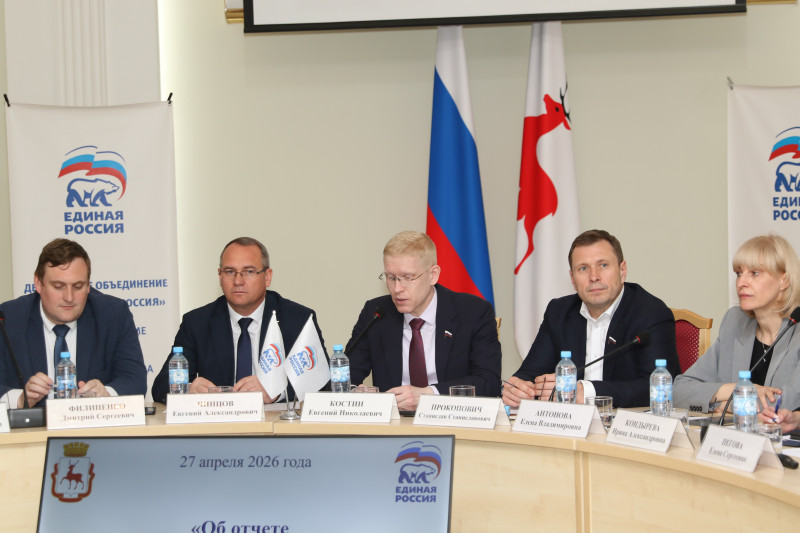 27 апреля 2026 года состоялось очередное собрание депутатского объединения «Единой России» в городской Думе Нижнего Новгорода под председательством руководителя партийного актива, первого заместителя спикера Думы Евгения Костина с участием председателя Думы, члена Генерального совета партии Евгения Чинцова, руководителя РИК партии Дмитрия Филипенко, представителей руководства администрации Нижнего Новгорода и секретарей местных отделений партии.