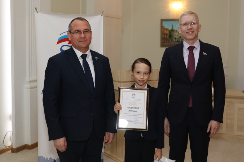 По традиции перед началом заседания 15 нижегородских школьников были отмечены благодарственными грамотами за активное участие и успехи в научно-исследовательской, общественной и патриотической деятельности, высокие достижения в спорте, искусстве и изучении отдельных предметов. Вместе с руководителем депутатского объединения в награждении приняли участие спикер Думы Евгений Чинцов и его заместитель Михаил Иванов.