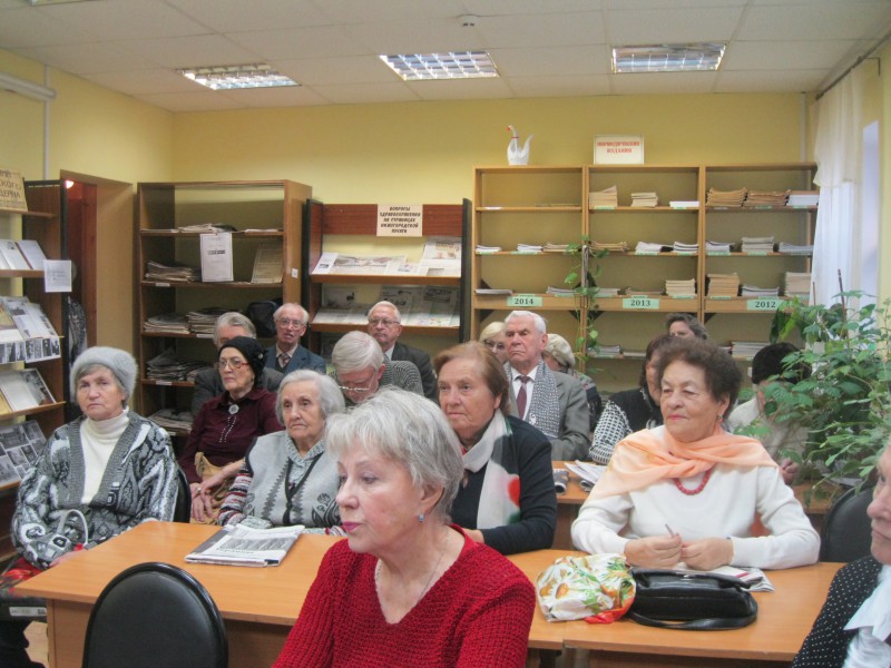 14 ноября в библиотеке имени Добролюбова состоялось заседание Совета ветеранов микрорайона "Горьковский", на котором члены общественной организации поздравили с юбилеем ветерана Великой Отечественной войны, "блокадницу" Боброву В.Г. Депутат В.Е. Агафонов поздравил Валентину Георгиевну с торжеством, она была отмечена благодарственным письмом и подарком. В.Г. Боброва поблагодарила ветеранов и депутата за поздравление и внимание к ней.