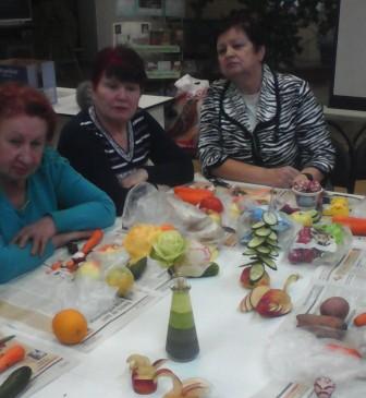 В библиотеке им. Островского прошел мастер-класс. Совет общественного самоуправления ТОС микрорайона «Спортивный» постигал технику карвинг. Из самых обычных овощей - репы, редьки, моркови, редиса рождались замечательные цветы - розы. Мы, в свою очередь, показали как яблоко можно превратить в прекрасного лебедя, а из огурцов вырастить новогоднюю елку.
