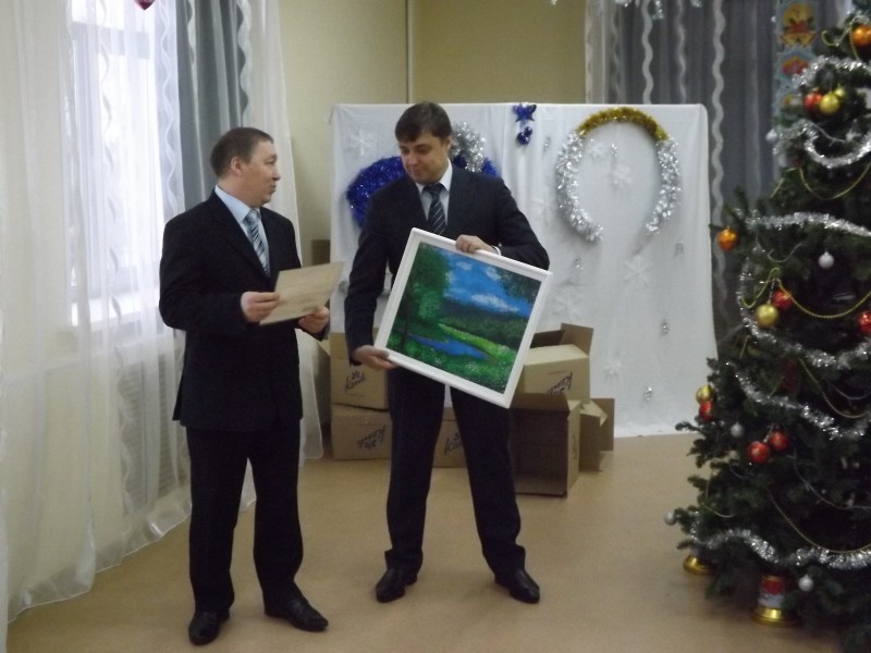 Директор Чернов Владимир Игоревич вручил Вячеславу Владимировичу благодарственное письмо и картину, нарисованную воспитанниками детского дома.