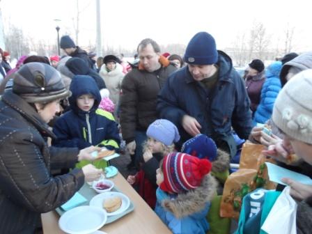 Праздник на детской площадке на ул. Рубинчика отличался своей массовостью, всех угощали вкусными блинами, а изюминкой праздника были блины с пылу, жару, выпеченные на улице.