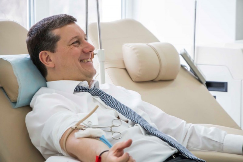 «Самочувствие хорошее, никаких побочных эффектов», - сказал глава города сразу после процедуры, в ходе которой он сдал 400 мл крови.