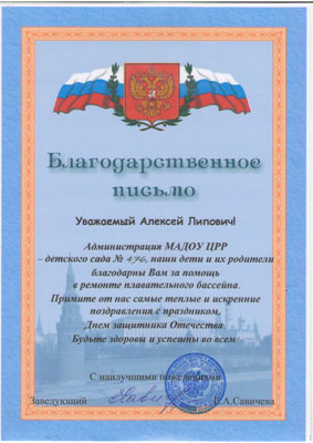 году обратился к депутату А.Л. Гойхману за помощью в ремонте бассейна. В сентябре были выделены
