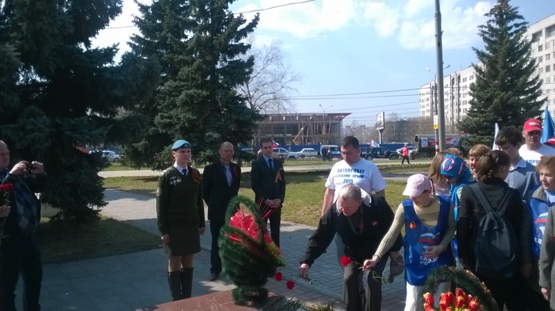 29 апреля в Московском районе депутат городской Думы Владимир Панов приветствовал участников автопробега "Южно-Сахалинск - Севастополь", которые прибыли в Нижний Новгород для передачи листов памяти в книгу "Дневник ветерана: Непридуманная история войны".