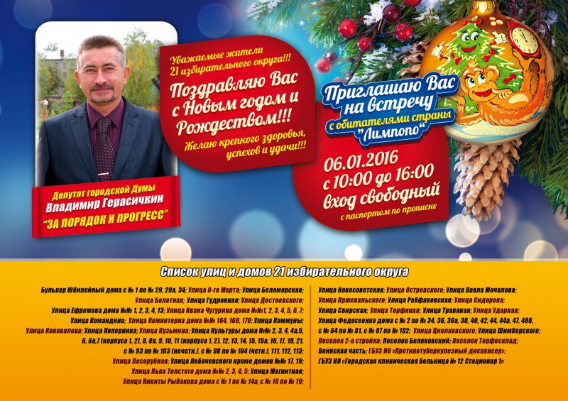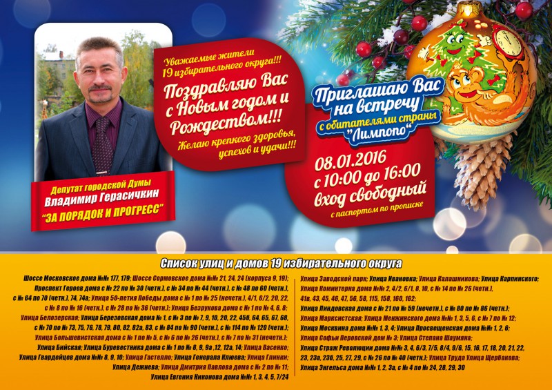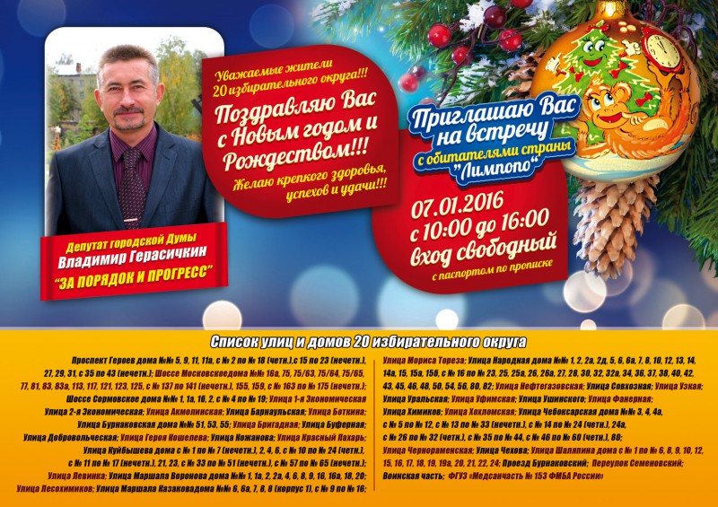 В новогодние праздники депутат Владимир Герасичкин приглашает в зоопарк «Лимпопо» жителей Московского и Сормовского районов.
