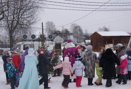 Дед Мороз, Снегурочка и сказочные персонажи, приехавшие в гости к детворе, пригласили всех в дружный хоровод. С песнями, плясками, веселыми конкурсами встречали дети наступающий Новый год.