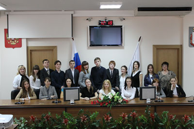 Сотрудник городской Думы Сучков Игорь Валентинович провёл учащихся по залам Дома советов и рассказал о его истории. Экскурсия началась с посещения зала заседаний городской Думы. У нас была уникальная возможность задать несколько вопросов. Некоторые из них были довольно каверзные, но даже на них мы получили исчерпывающие ответы. В этом зале нам поведали о вертикали власти, её структуре, местном самоуправлении, а также мы смогли проверить наши знания в области обществознания.