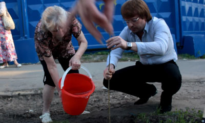 Депутат городской думы А.С. Белкин поддержал мирный протест жителей против точечной застройки. Совместно с жителями дома было посажено 12 деревьев.