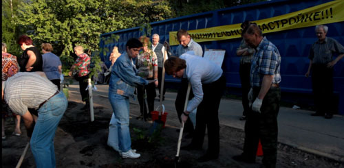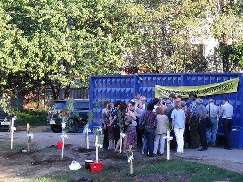 Активисты, принявшие участие в посадке деревьев, выразили общую позицию жильцов дома: «Мы устали от вида строительного забора на нашей земле и решили закрыть его деревьями. Сейчас машины подъезжают к дому по газону, который теперь и не похож на газон. Мы хотим нашей акцией показать – жители против этой безумной стройки, но мы за мирное урегулирование строительного конфликта».