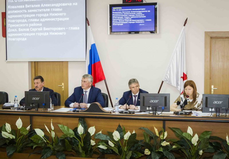 Сегодня глава Нижнего Новгорода Иван Карнилин провел очередное заседание городской Думы. В повестке дня было 27 вопросов, в том числе отчет главы городской администрации Сергея Белова о деятельности администрации города за 2015 год, согласование кандидатуры Наталья Смотраковой на должность заместителя главы администрации, Виталия Ковалева на должность главы Приокского района, Дмитрия Сивохина на должность главы Сормовского района, доклад о летнем отдыхе детей, о присвоении званий «Почетный гражданин Нижнего Новгорода» выдающемуся тренеру по конному спорту Евгению Абрамову, проректору Нижегородской государственной медицинской академии Игорю Терентьеву и ректору Нижегородской консерватории Эдуарду Фертельмейстеру.