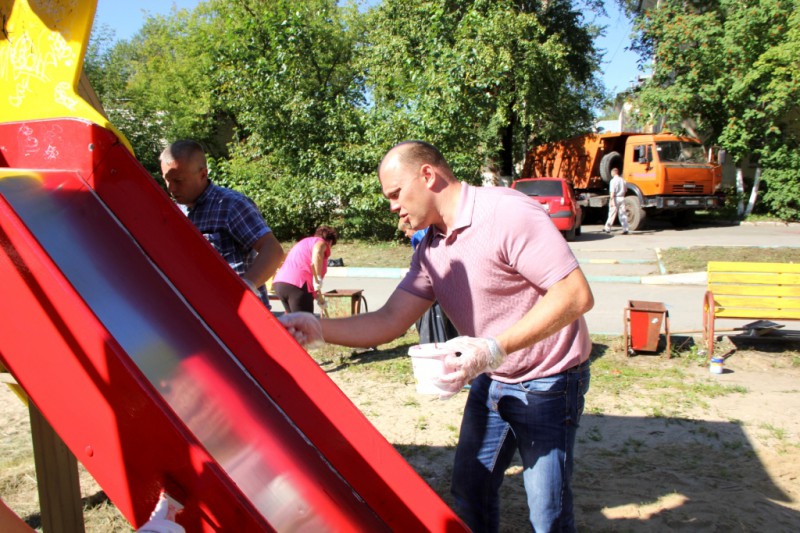 Один из первых трудовых десантов по инициативе администрации Канавинского района прошел на детской площадке по адресу: Московское шоссе,д. 284. На площадку был завезен песок, была покрашена вся площадка, убран мусор, а также восстановлено оформление входа на территорию детского городка.