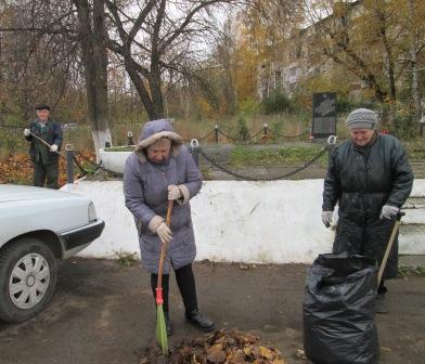 В рамках месячника по благоустройству 13 октября в ТОС микрорайона «15 квартал» прошел субботник по уборке территории у обелиска «Воинам, умершим от ран». В субботнике приняли участие ветераны микрорайона.