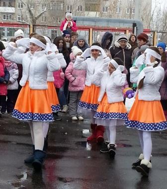 На площадке перед ДК «Доскино» собралась чуть не половина жителей микрорайона. Все были рады отметить этот двойной праздник в кругу друзей и соседей. Перед зрителями выступили все художественные коллективы Дома культуры. Ведущими праздника были веселые скоморохи, сказочные персонажи: Зима, Весна, Масленица. Народный хор «Россиянка» исполнил русские народные песни на тему праздника. Танцевальные коллективы «Танцетерапия» и «Багира» в этом же народном масленичном стиле танцевали задорные танцы. Все очень активно участвовали в различных конкурсах и соревнованиях, и взрослые и дети пели частушки, бегали наперегонки в мешках. Но, конечно же, самое массовое и любимое соревнование – это перетягивание каната. В завершение праздника всем был предложен горячий чай с бубликами и конфетами. Праздник прошел весело и запомнится надолго.