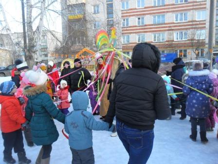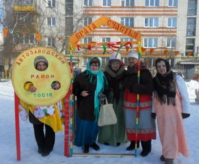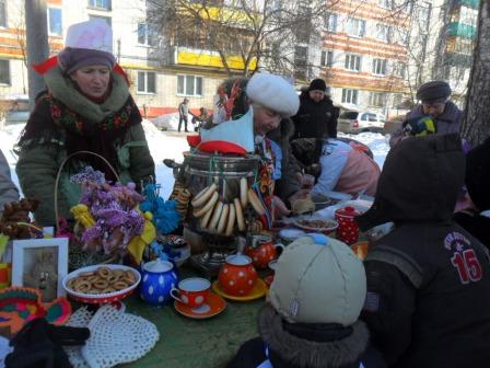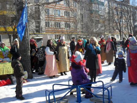 К Масленице готовились заранее: празднично украсили территорию-тут и ворота счастья, и дартц, огромный блин и русская печка. Перед праздником накрыли столы с угощением, русским самоваром и ярмаркой народных промыслов с коробейниками. Гостей встречали веселые матрешки с шутками и прибаутками. Было разыграно театрализованное представление, в котором приняли участие матушка Зима, Весна, Емеля, скоморохи. Хороводы водили с лентами. Под приветственные возгласы зрителей на коне украшенном в сопровождении ряженых появилась Масленица. Все присутствовавшие активно участвовали в конкурсах и зимних забавах с перетягиванием каната, метанием блинов, бегом в мешках, бои подушками. Традиционно щедрым было масленичное угощение – румяные блины с медом, сметаной, вареньем и красной икрой, а также ароматный травной чай. В заключение зрители приняли участие в праздничной лотерее.