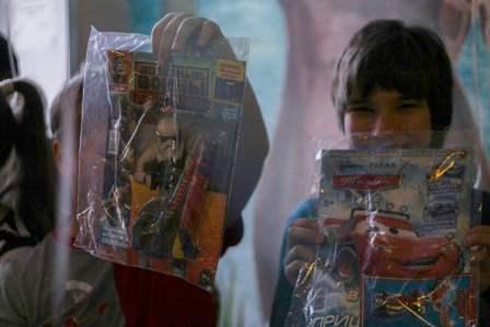 В рекреации больницы развернулась целая игровая площадка, где дети вместе со студентами разыгрывали сценки по любимым мультикам«Винни Пух и Пятачок», «Смешарики», участвовали в конкурсах и викторинах. Конечно, с нашим приездом «Коробка храбрости» пополнилась новыми подарками и ждет ребят в процедурном кабинете. В конце мероприятия всем детям дарили подарки: игрушки и гелиевые шарики. Настроение у наших подопечных было на высоте, подарков хватило всем ребятам. Вместе с детишками в восторге от такого совместного общения были и наши студенты: «Было приятно поиграть с ребятами. Они радовались и улыбались, а это значит, что мы смогли поднять им настроение и, хотя бы не много, скрасить их пребывание в больнице», «Мне понравилось, как преобразились ребята при виде шариков, подарков, очень было приятно хоть как-то поднять им настроение. Очень мило было наблюдать за самыми маленькими, рада была помочь» - говорили девочки. О подарках позаботились индивидуальные предприниматели и неравнодушные жители Автозаводского района, собрав для детишек огромное количество игрушек, книг, канцтоваров.