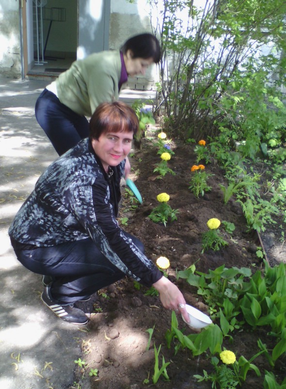 19 мая благоустроена территория у входа в библиотеку им. А. П. Чехова.