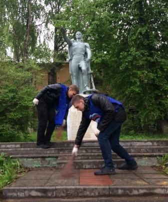 В рамках реализации проекта «Волонтеры 21 века» состоялась акция по уборке территории вокруг памятника солдату, которую провели члены организации «Молодая гвардия».