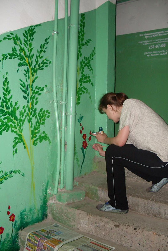 В жилых домах по улице Баумана разрисованы 2 подъезда.