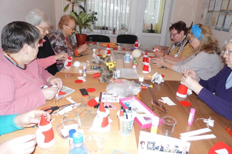 Из картона, ткани, ниток и элементов декора жители создавали символ Нового года – Деда Мороза. У каждого получился свой неповторимый Дед Мороз с колокольчиком на верхушке колпачка, который украсит новогоднюю ёлку и обязательно принесёт подарки детям и исполнит все желания.