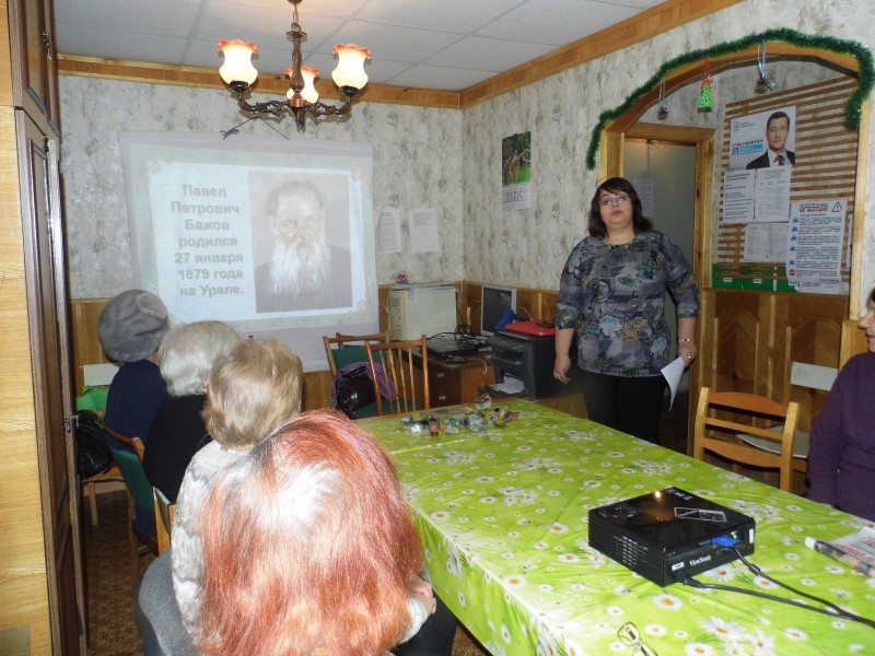 6 февраля Совет общественного самоуправления ТОС «1 микрорайон» совместно с работниками библиотеки имени Бориса Корнилова провели литературную гостиную, посвященную русскому и советскому писателю Павлу Петровичу Бажову. Работник библиотеки Светлана Зимина рассказала о семье, в которой родился и вырос замечательный русский писатель, талантливый обработчик народных преданий, легенд, уральских сказов, какое он получил образование, когда и как начал писать сказы. Учась в духовном училище г. Екатеринбурга, во время летних каникул Павел Бажов путешествовал по Уралу и собирал фольклор. В 1917 году он добровольно вступил в ряды Красной Армии и принимал участие в боевых операциях на Уральском фронте, был журналистом дивизионной газеты «Окопная правда», в камышловской газете «Красный путь» и в свердловской — «Крестьянская газета». Первый сборник сказов «Малахитовая шкатулка» вышел в 1939 году, а в 1944 году уже был переведен на 100 языков мира. За издание уральских сказов «Малахитовая шкатулка» Павел Бажов был удостоен звания Лауреата Государственной премии и награждён орденом Ленина. Далее жители посмотрели документальный фильм о доме-музее Павла Бажова в Екатеринбурге и мультфильм «Серебряное копытце». Также на мероприятии была организована выставка уральских самоцветов, на которой Светлана Зимина предоставила к просмотру несколько видов малахита, разновидностей агата, горного хрусталя и много других минералов.