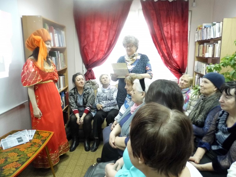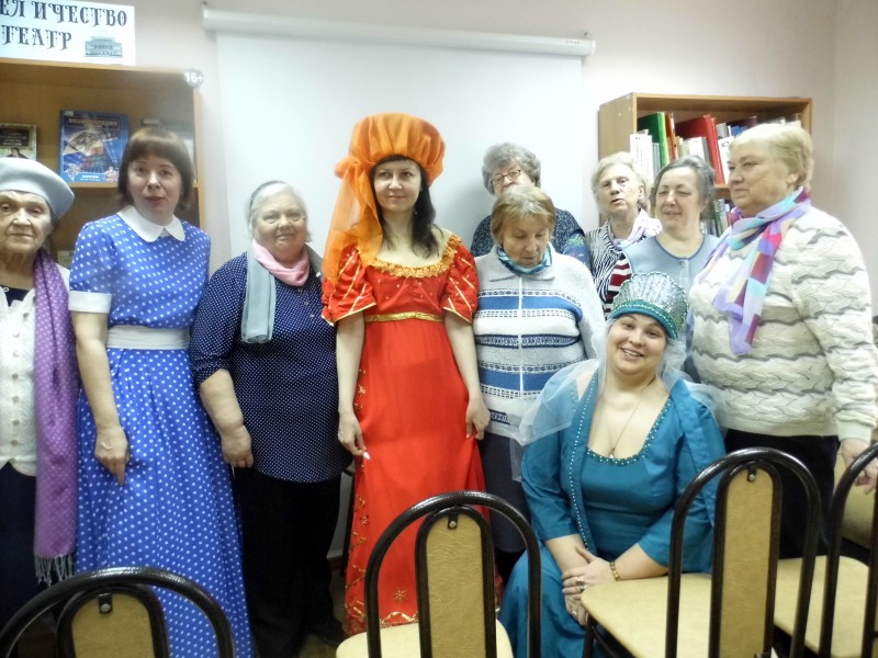 Для жителей микрорайона сотрудники библиотеки в костюмах театральных персонажей по очереди рассказывали о появлении в нашем городе театров.