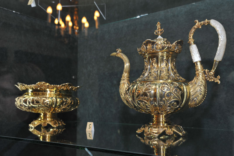 Кроме уникального царского блюда в новой экспозиции, которая расположена в трех залах, еще около сотни предметов: старинные часы, огнестрельное и холодное оружие, золотая и серебряная посуда, фарфор, ювелирные изделия, клады, в том числе известный на весь мир Афанасьевский клад – ученые датируют его VII-IX веком. Также в экспозиции - старинные книги, иконы, в том числе напрестольное Евангелие 1689 года. «Уникальным экспонатам - уникальное оборудование. Нельзя было выставлять все эти ценности, просто положив на витрину. Богатейшие экспонаты сейчас представлены в самой современной форме – можно полистать страницы Евангелия, не нанося ущерба самому изданию. Но самое главное, что теперь уникальные исторические ценности доступны для всеобщего обозрения», - отметил Олег Сорокин.