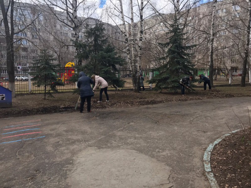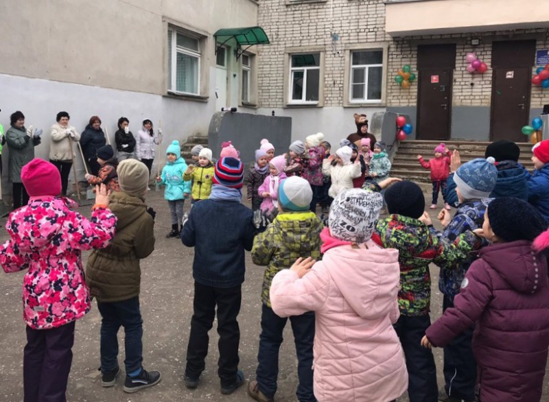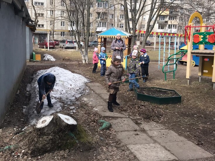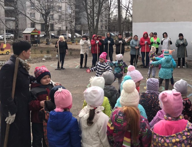 После концерта группы распределились по территории детского сада для наведения порядка, сбора листьев, рыхления снега. В субботнике также приняли участия родители дошколят, воспитатели и заведующая детского сада Марина Ладышкова.