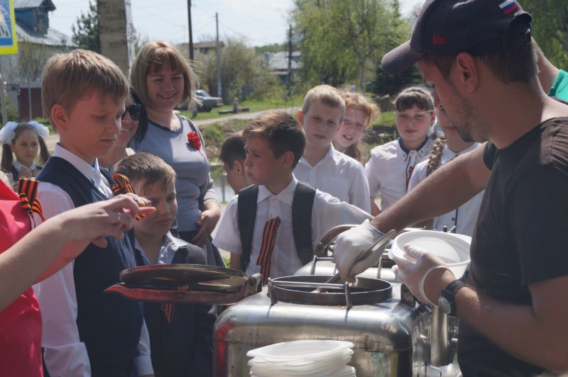 При поддержке депутата для жителей района была организована военно - полевая кухня, а ветеранам и труженикам тыла были вручены подарки.