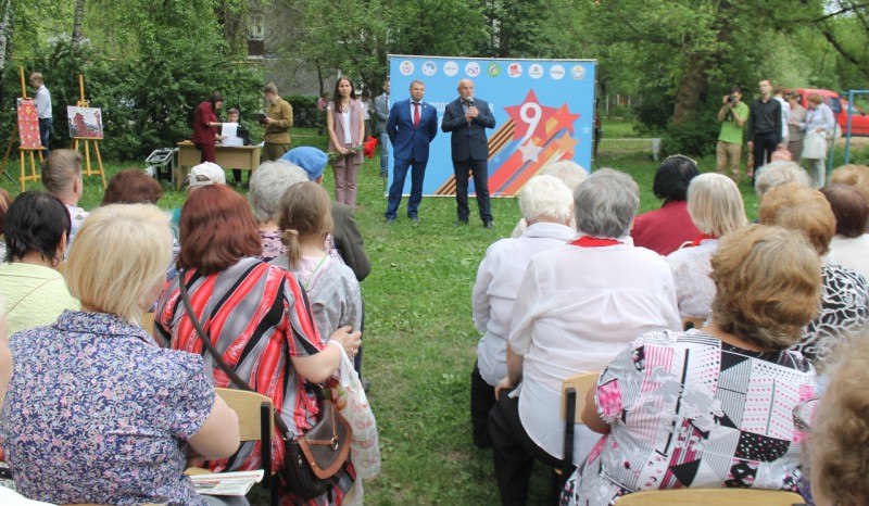 Выставка патриотического плаката и галерея фотографий героев Великой Отечественной войны с орденами и медалями на груди создали во дворе особую праздничную атмосферу.