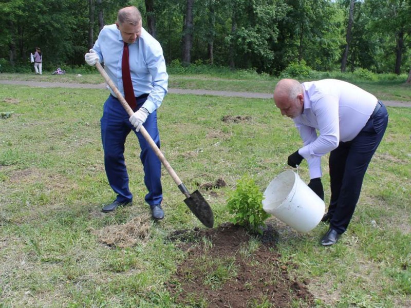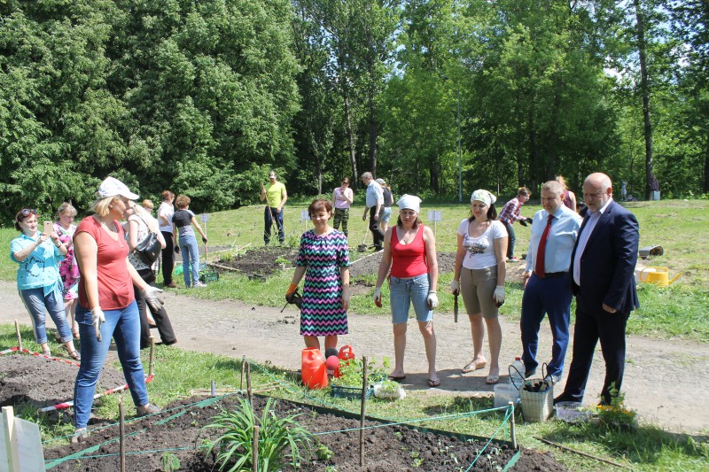 Каждая команда старалась сделать свой цветник самым привлекательным. Секретарь местного отделения Андрей Дранишников и глава администрации Ленинского района Алексей Глазов высоко оценили труд каждой команды и тоже приложили усилия к облагораживанию парка, посадив кустарники жасмина.