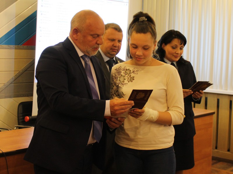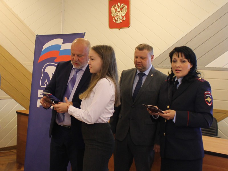 Депутат вместе с главой Ленинского района Алексеем Глазовым и начальником отдела по вопросам миграции Мариной Золиной вручили паспорта лучшим школьникам района. Вместе с паспортами ребята получили в подарок брошюры «Конституция Российской Федерации» и билеты на премьеру в театр музыкально-пластической драмы «Преображение» от главного режиссера Анатолия Малафеева.