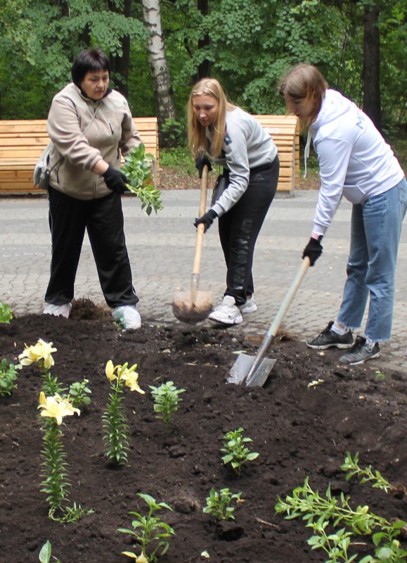 По инициативе активистов Совета ТОС микрорайона «Двигатель» в рамках проекта «Формирование комфортной городской среды» на территории парка «Дубки» при поддержке местного отделения партии «Единая Россия» и «Молодой гвардии» в открытый грунт высажено более 500 цветов.