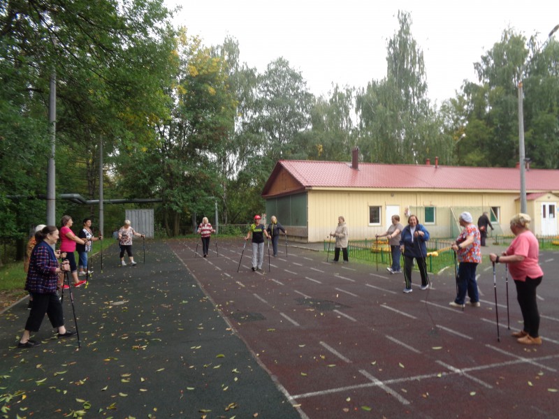 19 августа на стадионе школы №46 под руководством тренера Ольги Кротковой жители занимались скандинавской ходьбой. Тренер прошла вместе с каждым участником 8 кругов по стадиону, проверяя технику ходьбы. Далее был выполнен усложненный комплекс упражнений на гибкость суставов рук и ног, для укрепления стопы, мышц, связок шеи, рук и ног. Каждое упражнение сопровождалось правильным дыханием.