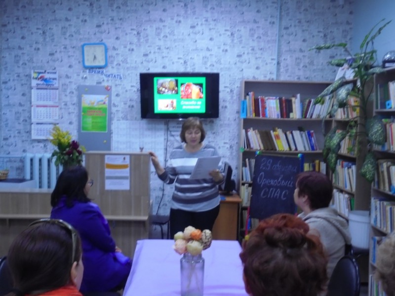 28 августа в библиотеке им. Радищева состоялось праздничное мероприятие «Спас-всего про запас», организованный председателем Совета ТОС №16 пос. Мостоотряд Людмилой Симоновой совместно с сотрудниками библиотеки. В последний месяц лета православные верующие отмечают три крупных праздника, три спаса — Медовый, Яблочный или Хлебный, а так же ореховый спас. Ирина Евгеньевна, библиотекарь, подготовила для гостей красочную презентацию про спасы. После презентации собравшиеся гости отгадывали загадки, вспомнили пословицы и делились своими познаниями. Кто-то из присутствующих читал о них в книжках, кто-то узнал от бабушек о традициях нашего народа. Так же присутствующие узнали о народных приметах и приняли участие в викторине. После за праздничным столом гости познакомились с разными видами меда -подсолнечный, липовый, майский, луговой, Алтайский, таежный, с прополисом, малиновым и самым пикантным — с имбирем и лаймом. Познакомились с различными рецептами шарлоток, научились изготавливать розочки из яблок, угостились ореховым вареньем и ореховыми трубочками с яблочным мармеладом и травным ароматным чаем. Праздник получился не просто интересным, а очень вкусным и познавательным.