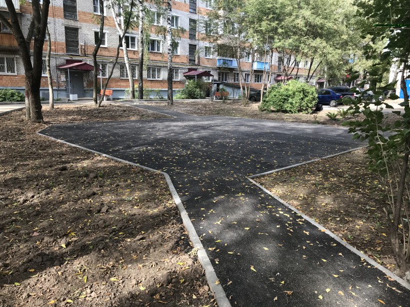 Общая площадь ремонта дорожного покрытия дворов составила более трех тысяч кв. м дорог и дворовых проездов. Во дворах сделали парковочные карманы общей площадью 2,8 тыс. кв. м, отремонтировали асфальт у входных групп подъездов, установили 11 новых лавочек и урн, а также отремонтировали старые. Кроме того, была установлена спортивная площадка из четырех тренажеров, турников и спортивного комплекса.