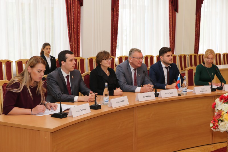 В зале приема официальных делегаций китайских гостей встречали исполняющий полномочия председателя городской Думы Николай Сатаев, заместитель председателя Ольга Балакина и руководитель аппарата городской Думы Антон Казаков.